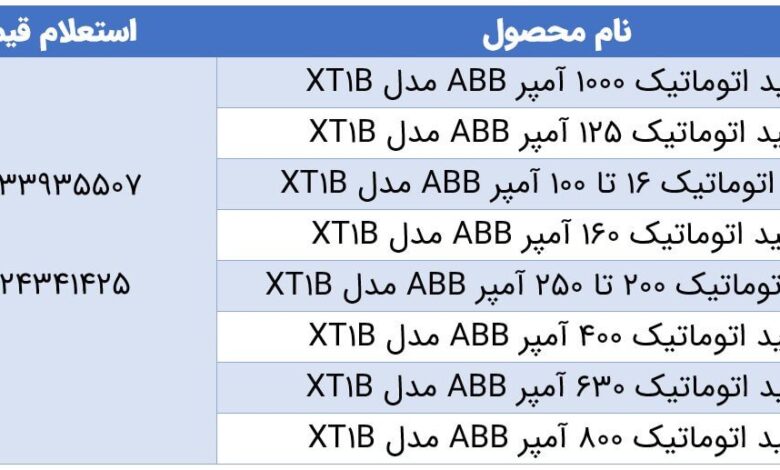 همان طور که گفتیم بهترین راه حل برای اطلاع از لیست قیمت کلید اتوماتیک abb خرید از فروشندگان، تهیه کنندگان یا وارد کنندگان معتبر و شناخته شده این محصول است. به دلیل افزایش استفاده از کلید اتوماتیک abb تعداد وارد کنندگان یا تولید کنندگان آن هم افزایش پیدا کرده است و این موضوع باعث تغییر روزانه این محصول می شود. به همین دلیل نمی توان یک قیمت قطعی برای کلید اتوماتیک abb ارائه کرد.
