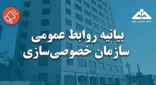 در این رابطه روابط عمومی سازمان خصوصی‌سازی بیانیه‌ای منتشر کرد که متن آن بدین شرح است: